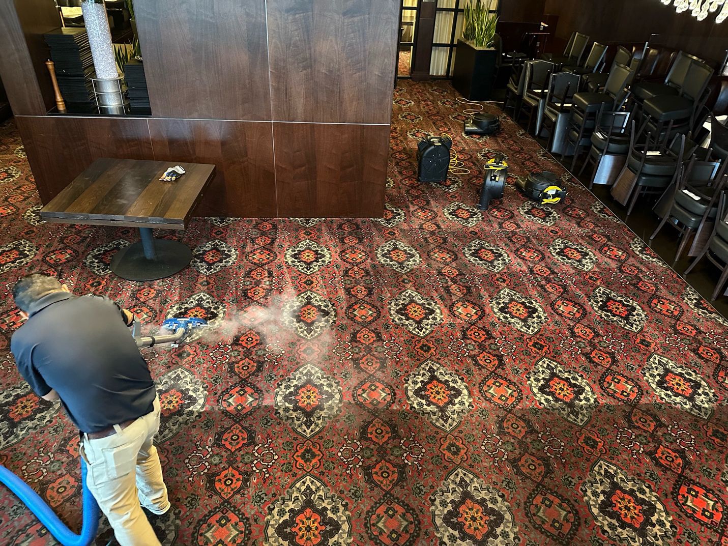 We usually work overnight or during low- occupancy windows, cleaning hallways and ballrooms in phases. Corridors remain passable, and guestroom impact is minimal. We coordinate ahead on floor sequencing, elevators, and event schedules so you protect guest experience without blocking large sections of inventory.